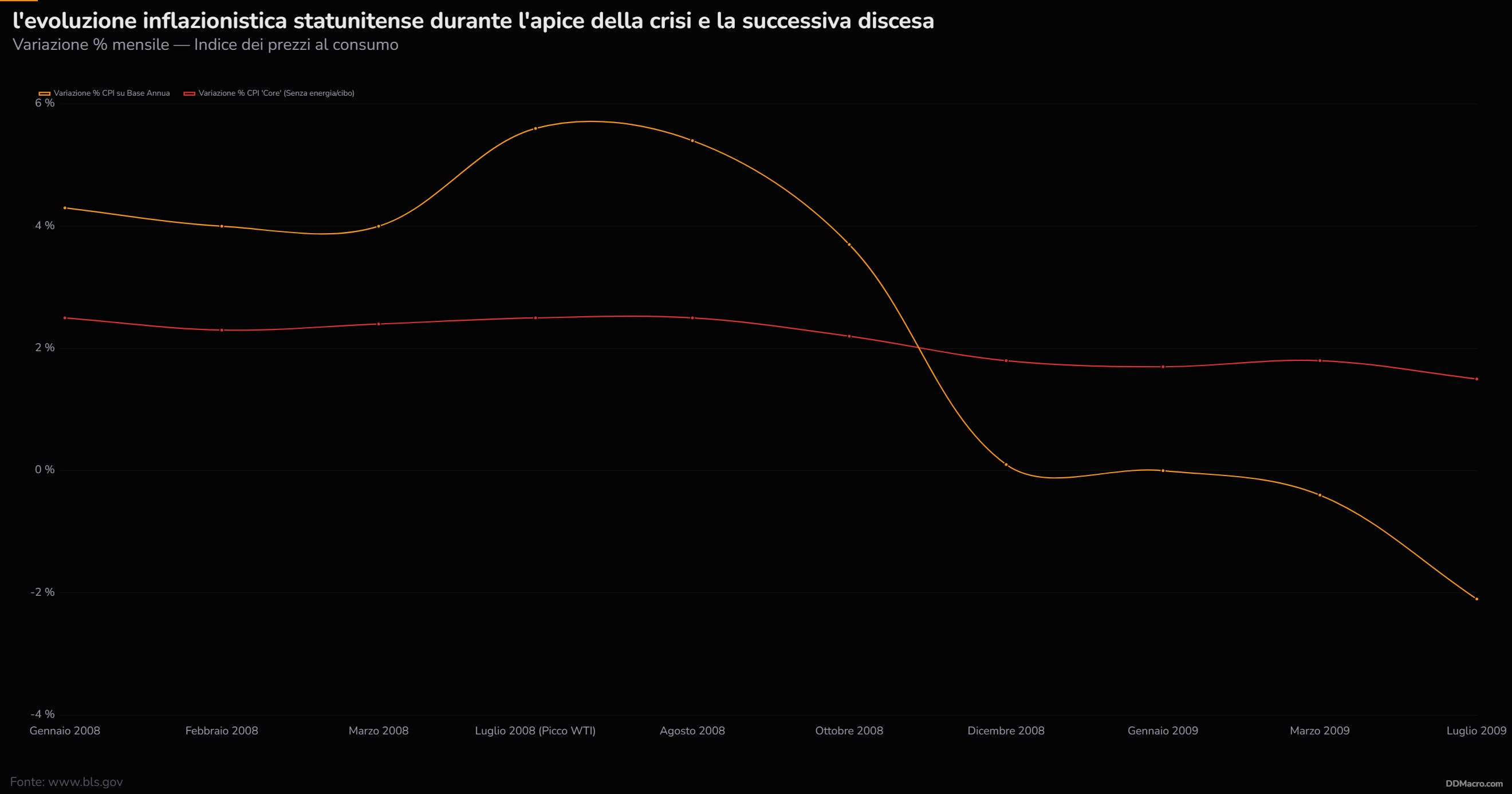 La parabola del 2008: come un picco inflazionistico diventa deflazione