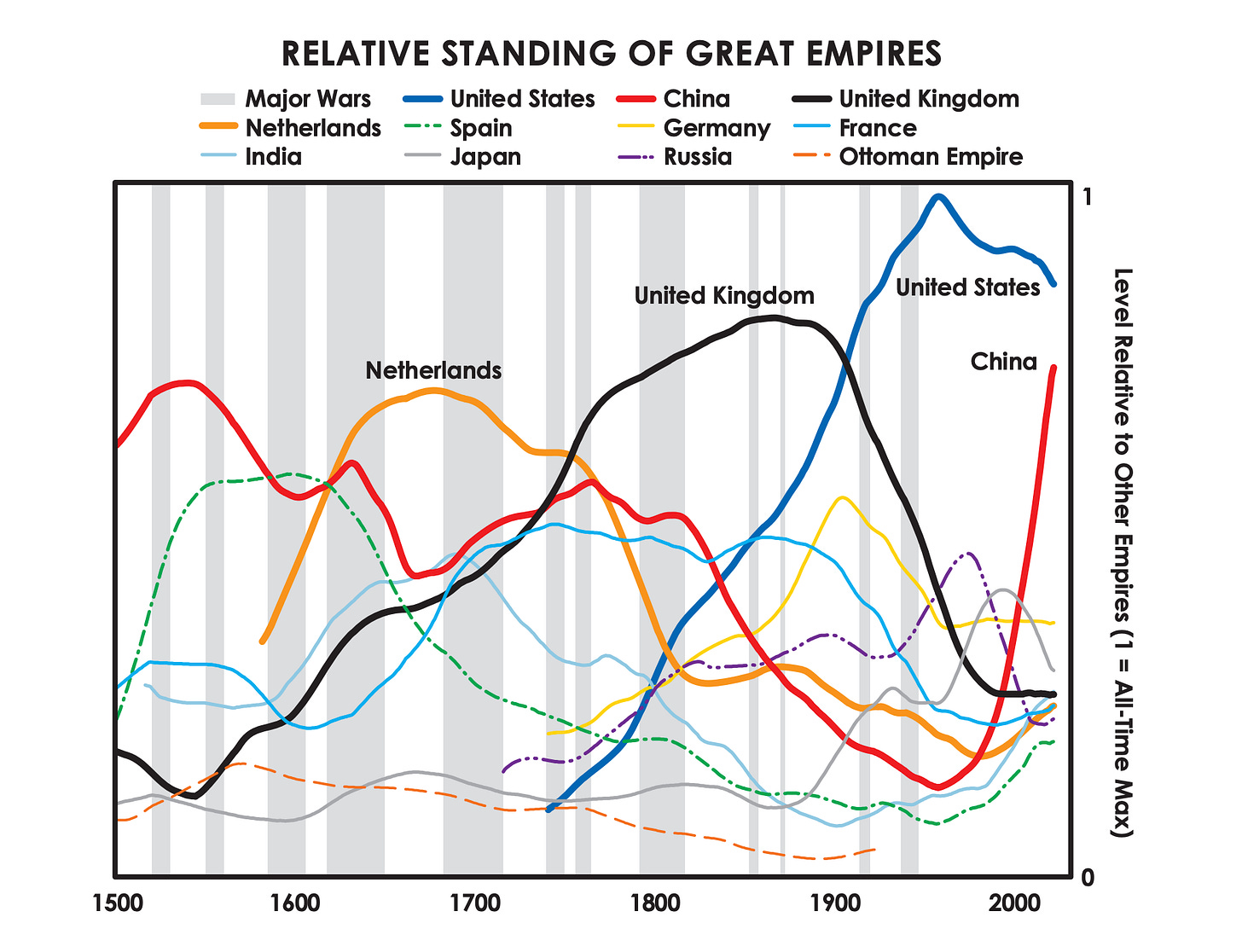 Il Grande Ciclo teorizzato da Dalio non è una legge fisica, ma il track record storico è inequivocabile: nessun impero ha mai interrotto la transizione. Al massimo, l’ha prolungata — e lo ha fatto tipicamente controllando le risorse di cui i rivali dipendevano.