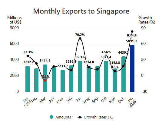 A gennaio, Singapore ha importato circa 3 miliardi di dollari di GPU, +247% trimestre su trimestre, diventando il secondo maggiore importatore globale dopo gli Stati Uniti.